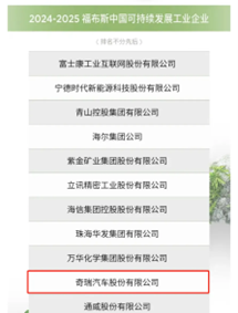 近日,福布斯中国公布了备受瞩目的“2024-2025福布斯中国可持续发展工业企业系列评选”榜单,奇瑞汽车股份有限公司凭借其在可持续发展领域的卓越实践和创新成就脱颖而出,成为唯一荣登该榜单的汽车制造企业。